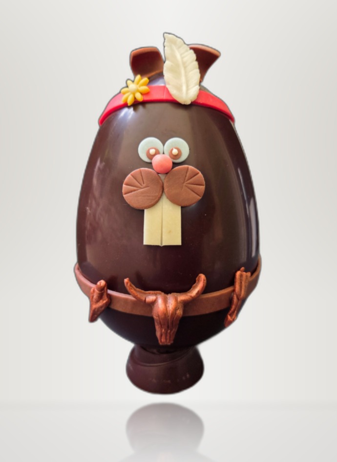 L’humour et le savoir-faire artisanal réunis en une seule création. Le Lapin Indien est façonné à la main dans l’atelier du Vieux-Nice, en chocolat noir grand cru ou au lait, arborant fièrement sa coiffe à plumes, sa ceinture à tête de bison et son visage espiègle aux détails saisissants. Une pièce unique qui fait sourire autant qu’elle fait saliver. Garni de douceurs artisanales. Disponible en boutique et en livraison sur Nice et ses alentours.