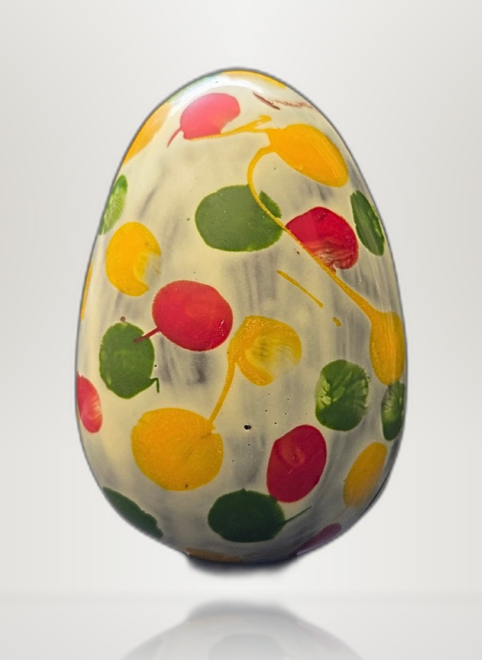 Une œuvre d’art aussi belle à regarder qu’à déguster. L’œuf « Color » est façonné à la main dans l’atelier du Vieux-Nice d’Alexis Monod, en chocolat noir grand cru, puis peint à la main de touches de couleurs vives et joyeuses. Garni de douceurs soigneusement choisies, il incarne le raffinement de la chocolaterie artisanale niçoise. Disponible en boutique et en livraison sur Nice et ses alentours.