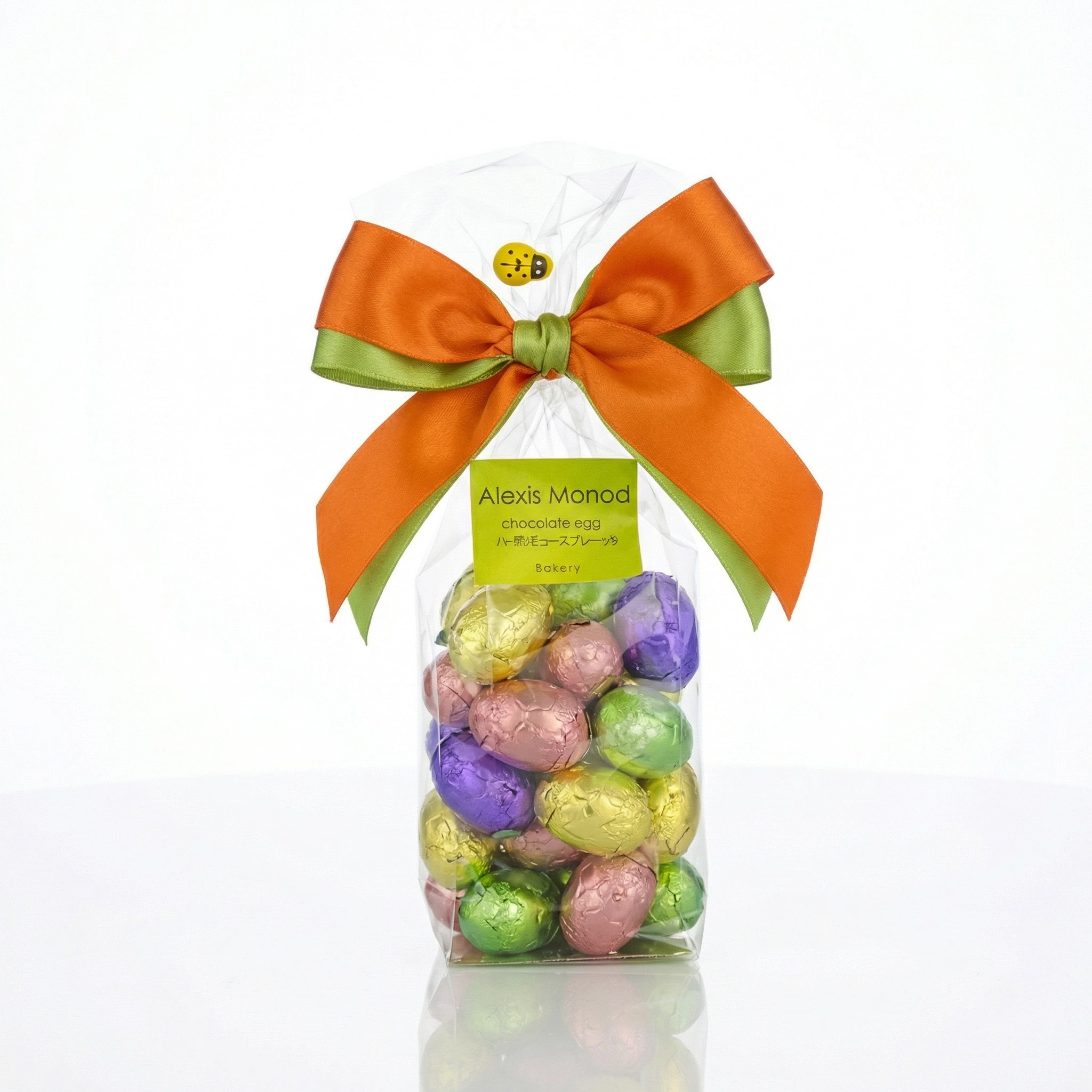 Traditionnelle chasse aux oeufs de Pâques. Ainsi Alexis Mond vous propose de délicieuses petites bouchées chocolatées avec des chocolats au lait noir ou blanc et des saveurs