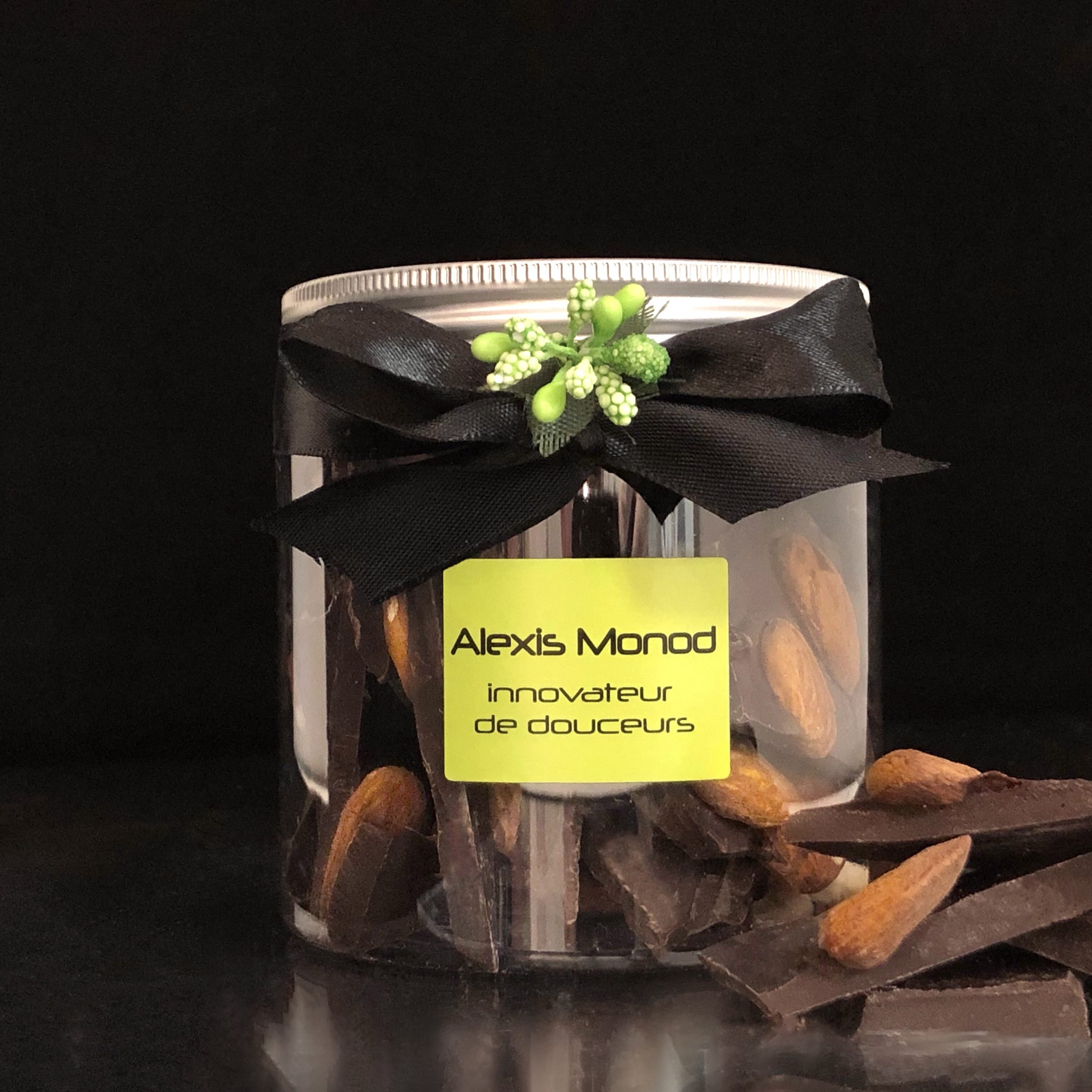 Pour les fervents de douceur, Alexis Monod propose cette magnifique boîte de chocolat noir agrémenté du croquant d’exquises amandes torréfiées.