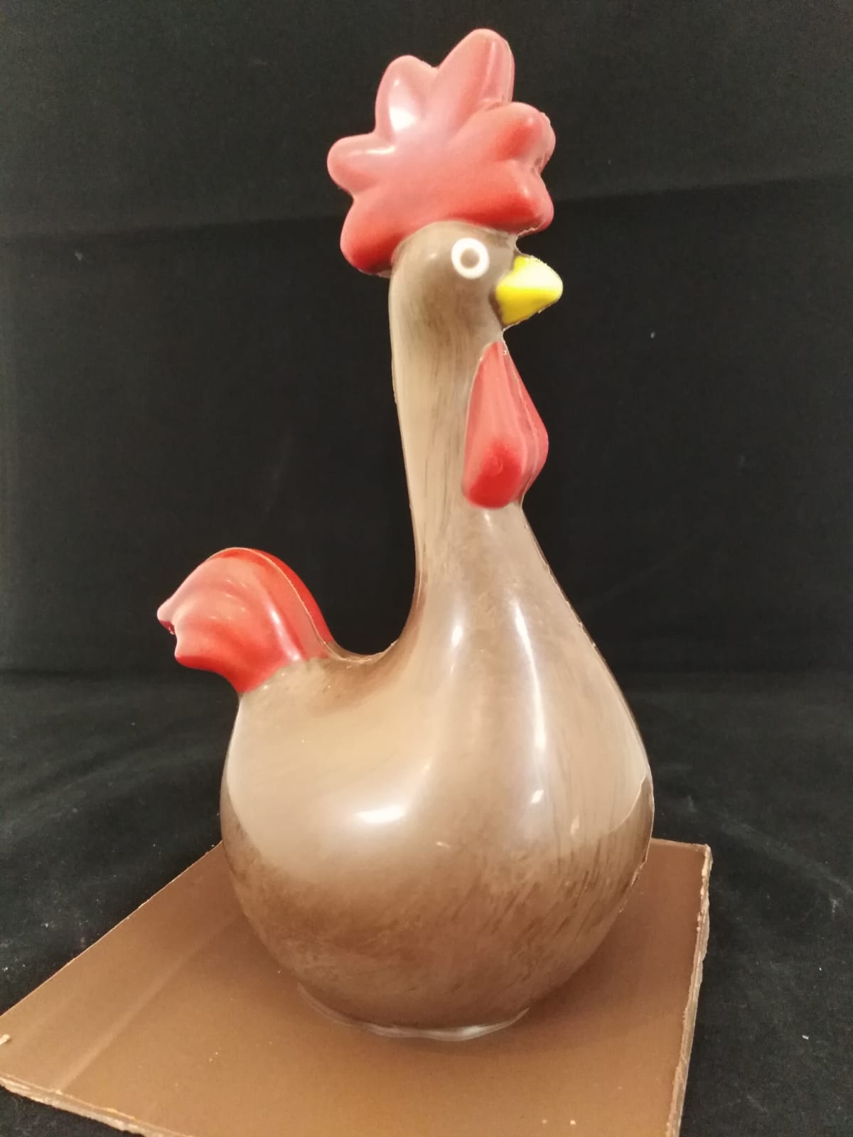 Un coq de pâques en chocolat noir ou lait sympathique pour des fêtes de Pâques remplis de joie !