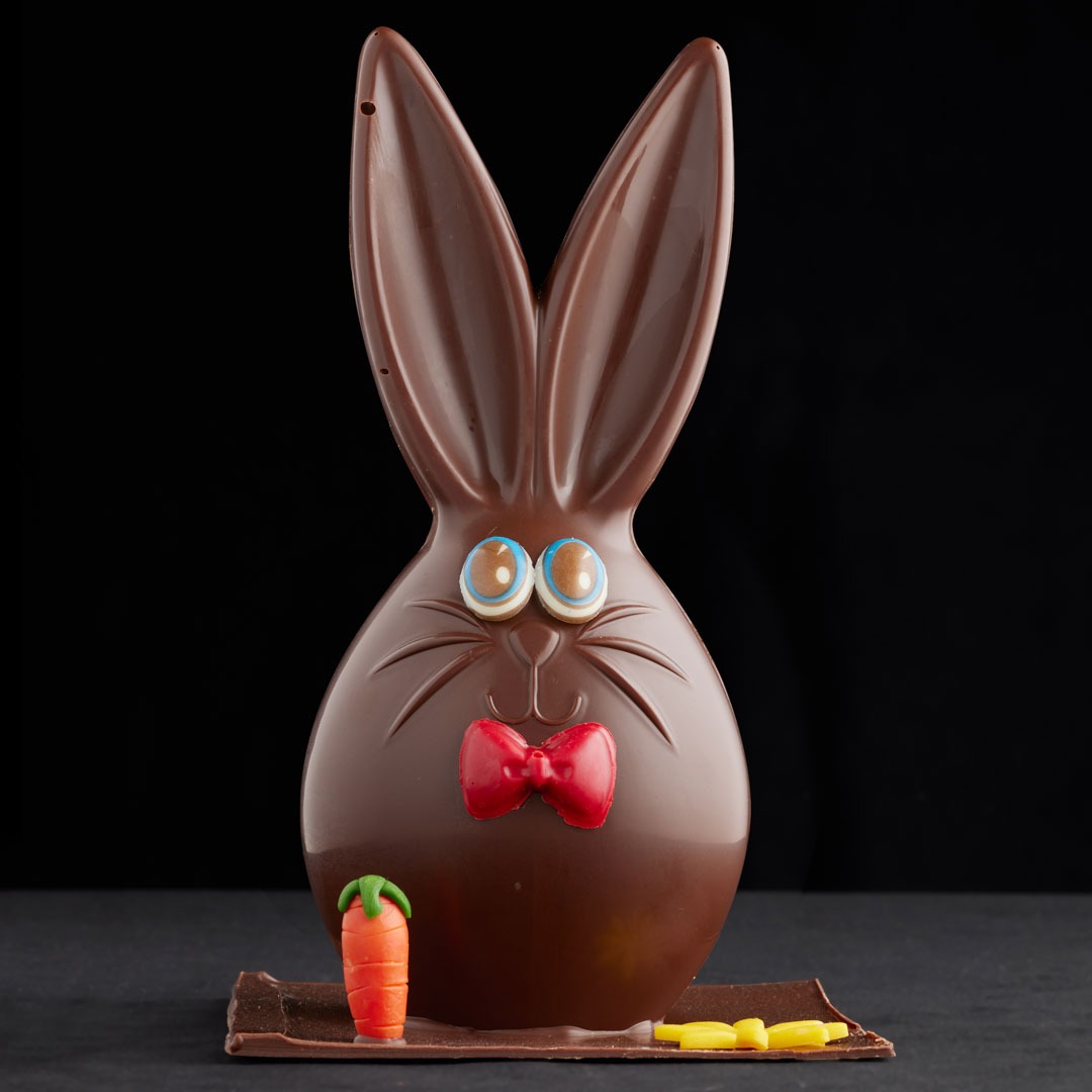 Découvrez notre création spéciale Fêtes de Pâques : Le Lapin de pâques en chocolat noir ou lait
