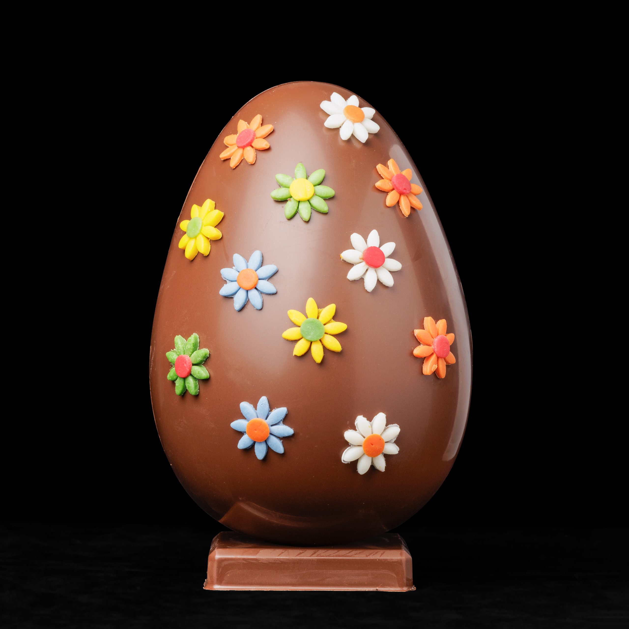 Œuf « Printemps fleuri » garni en chocolat noir ou lait