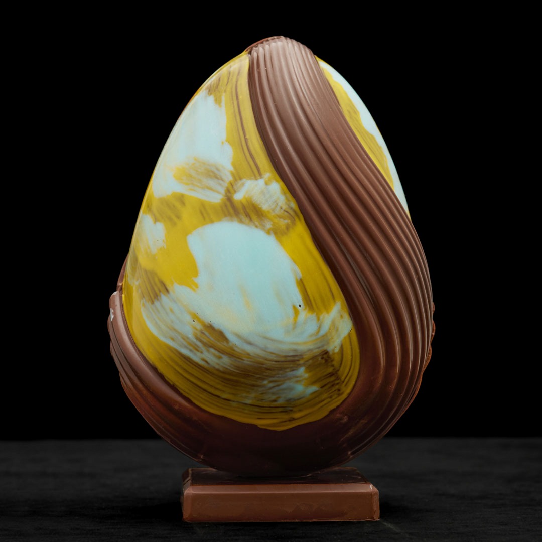 L’oeuf en chocolat raffiné d’Alexis Monod, qu’il soit noir ou au lait, est une véritable œuvre d’art gourmande. Décoré de magnifiques reliefs, cet œuf transcende la simple gourmandise pour devenir un véritable objet de contemplation. Offrir cet œuf, c’est offrir un cadeau à la fois raffiné et exquis, qui ravira les amateurs de chocolat tout en apportant une touche d’élégance et de délicatesse à chaque occasion.
