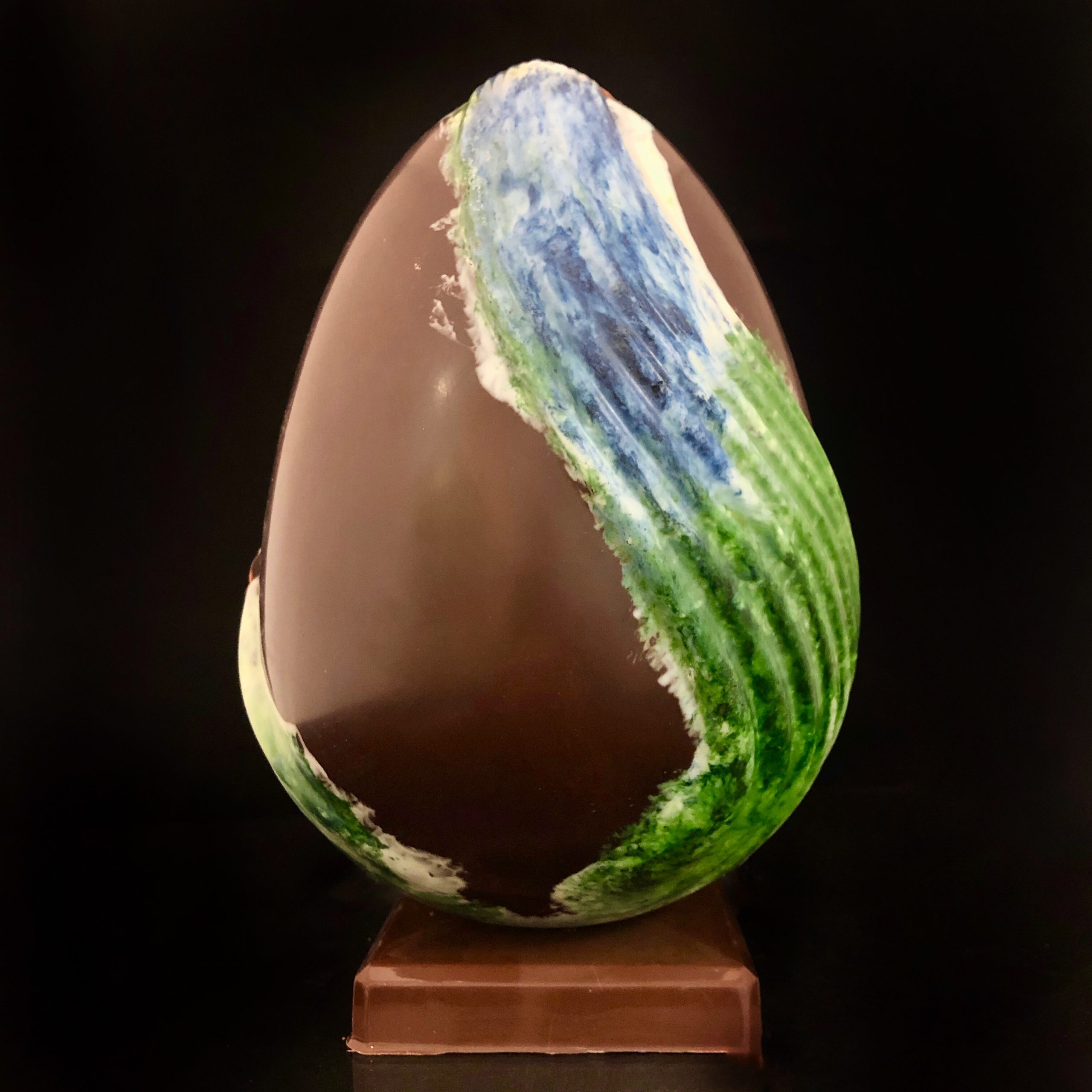 L’œuf en chocolat raffiné d’Alexis Monod, qu’il soit noir ou au lait, est une véritable œuvre d’art gourmande. Décoré de magnifiques reliefs, cet œuf transcende la simple gourmandise pour devenir un véritable objet de contemplation.